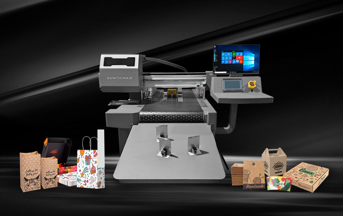 The Sunthinks SC300 Single Pass Printer is a small size direct-to-package printing solution.Whether you’re scaling an existing packaging business or starting fresh, Sunthinks offers a turnkey single pass printing solution that delivers vibrant, C/M/Y/K 4-color results on demand.SC300 can help you quickly start your printing business of paper bags/paper boxes/cartons/wood boards/and other porous packaging materials.