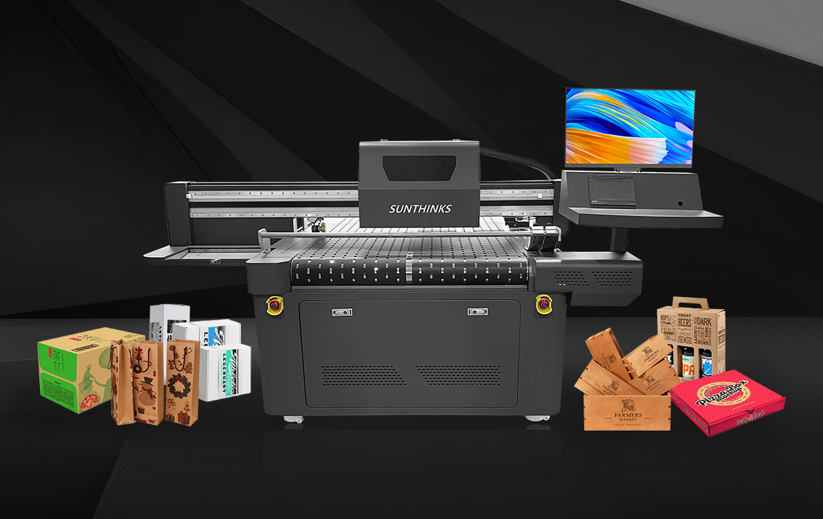 The Sunthinks SC600 Mini digital single pass printer is a fast printing solution for direct printing onto packaging materials. Whether you're expanding your existing packaging business or starting a new one, Sunthinks offers a turnkey single-pass printing solution that delivers vibrant C/M/Y/K color results on demand. The SC600 Mini can help you quickly start printing on porous packaging materials such as paper bags, pizza boxes, corrugated cardboard, corrugated cartons, and wood boards.