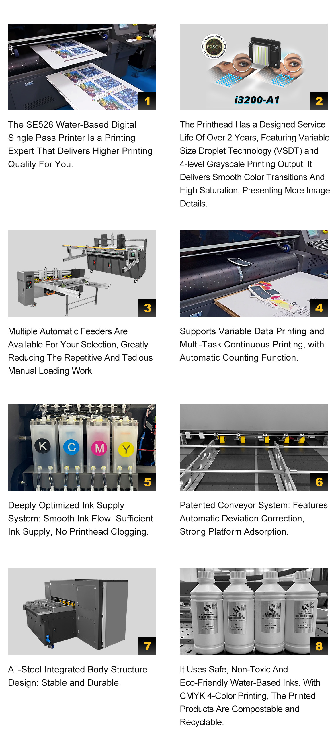 1.The SE528 single pass digital printer brings your designs to life and takes printing quality to the next level.